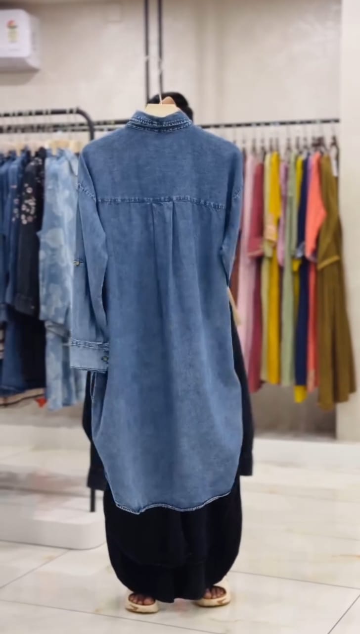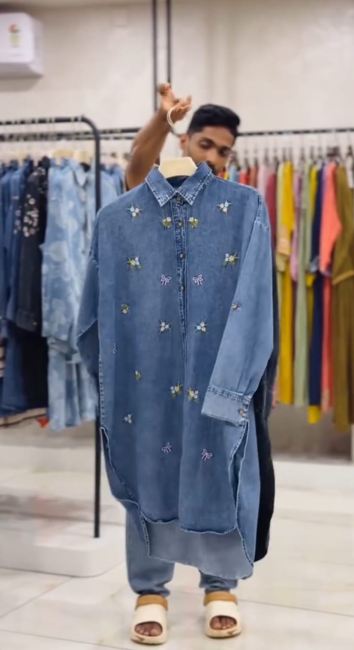.🌼 Premium Embroidered Denim Long Shirt 🌼